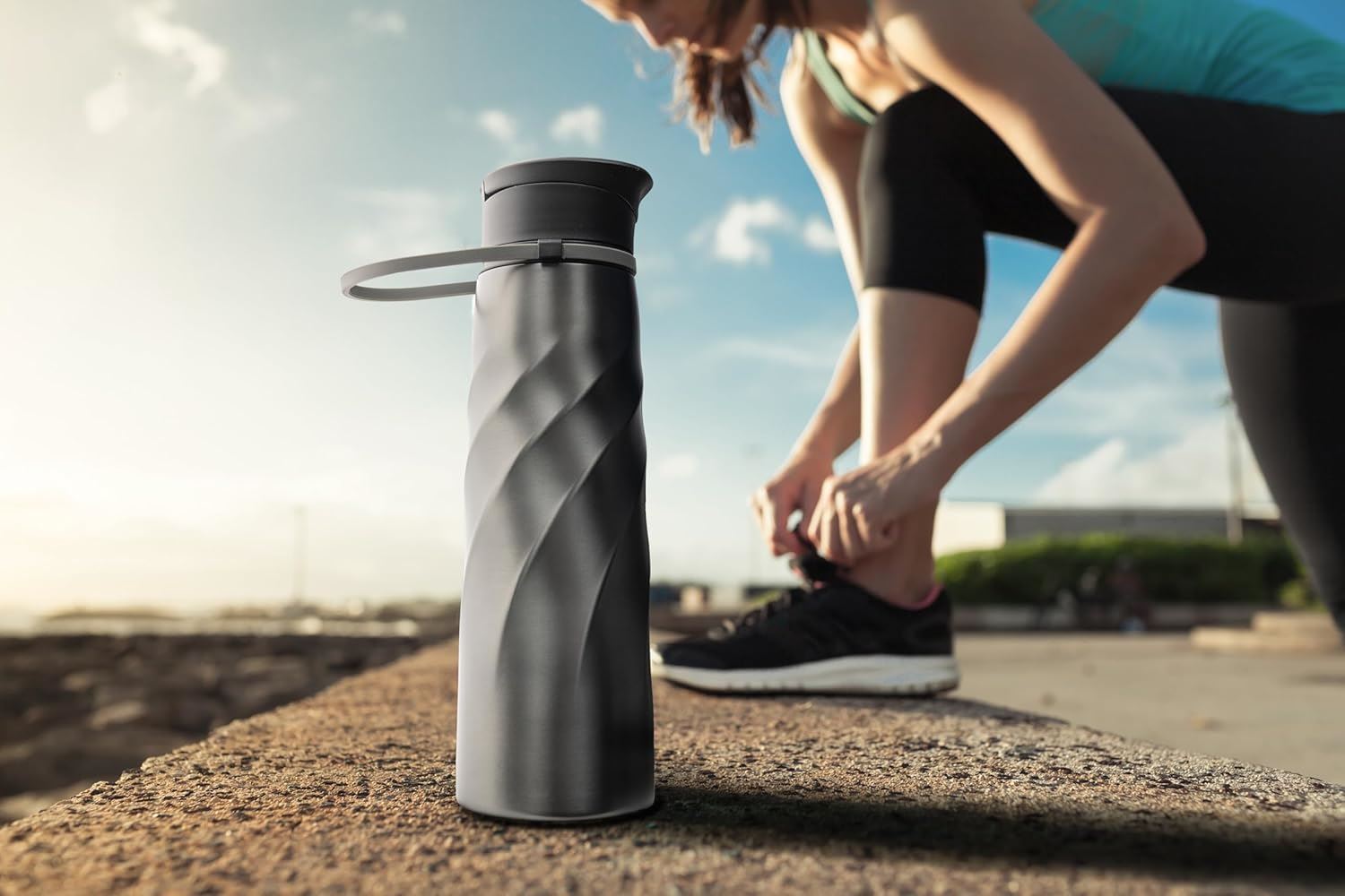 בקבוק מים עשוי מפלדת אל חלד באיכות גבוהה. קל משקל בעיצוב המאפשר ניקוי קל. כולל רצועת נשיאה גמישה כל החלקים של תרמוס נירוסטה זה ניתנים למדיח כלים צבע: אפור חומר: מתכת, נירוסטה שיטת יישום: חריטה, הדפסת פד נפח, מ"ל: 1000 משקל: 232 גרם.
