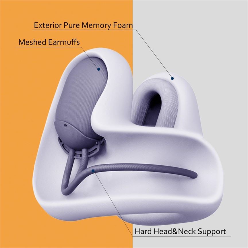 כרית לצוואר הכרית נותנת תמיכה לצוואר , מפחיתה רעשים ע"י אטימה מקסימלת של האוזניים נוחה לשינה בזמן נסיעה או טיסה כוללת אוזניות איכותיות