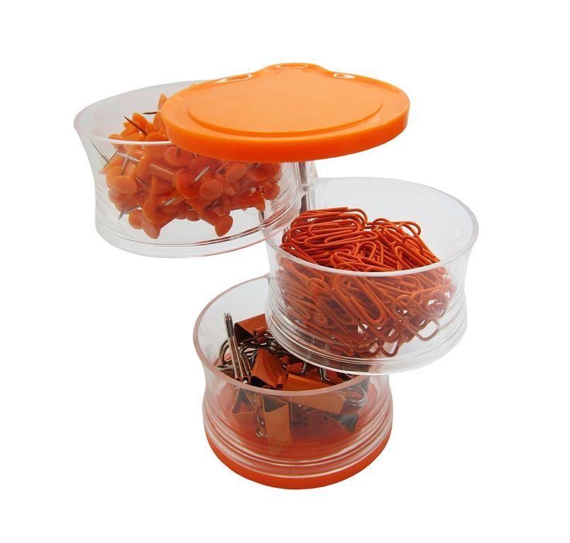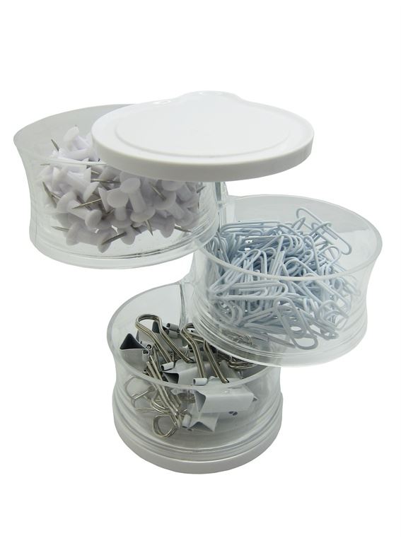 מארז אטבים 3 קומות כל קומה מכילה אטב שונה אטב משרדי גדול / אטב משרדי קטן/ נעצים מגיע במבחר צבעים גובה המוצר 12 ס"מ