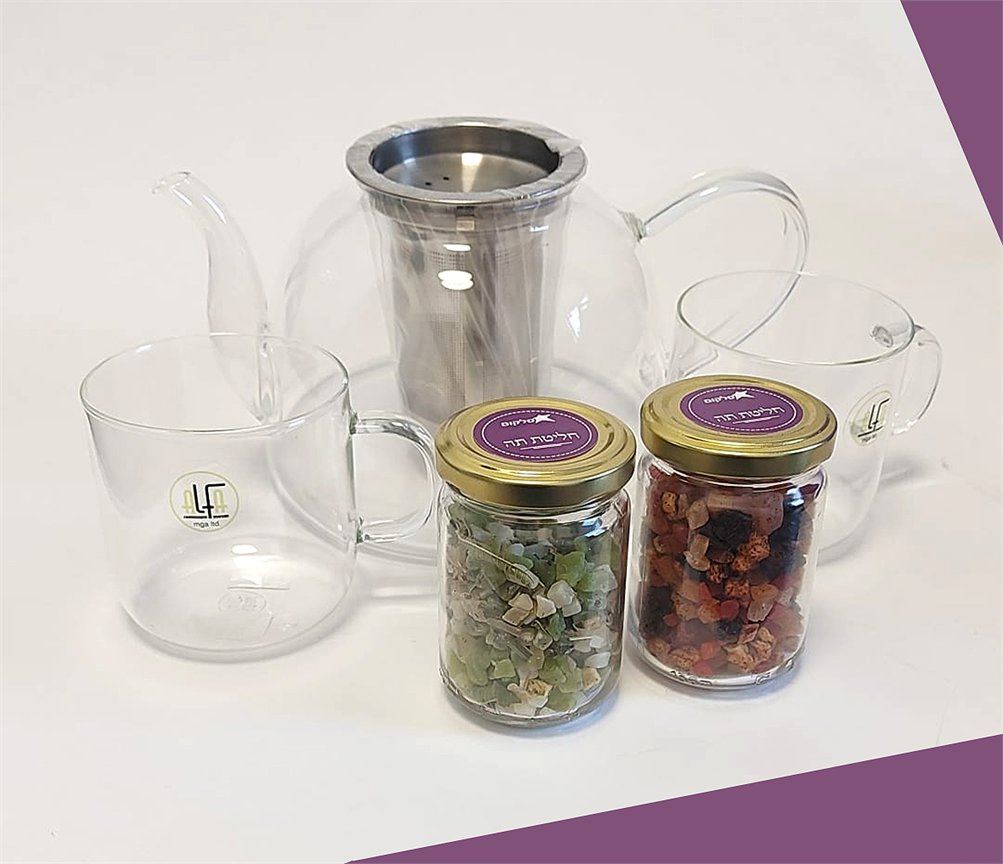 הפקה מיוחדת עבור סלקום לחג הפסח. מכיל: קומקום זכוכית לחליטה 2 ספלי זכוכית 2 צנצנות עם חליטות תה