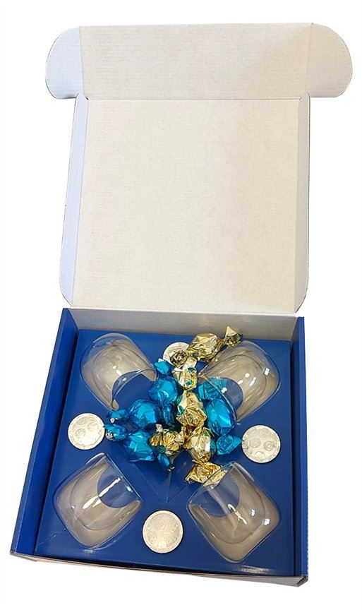 מארז פסח, הופק במיוחד עבור פסגות. במארז - 4 כוסות אספרסו דופן כפולה, 4 קפסולות קפה. פרלינים.