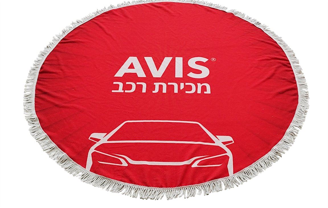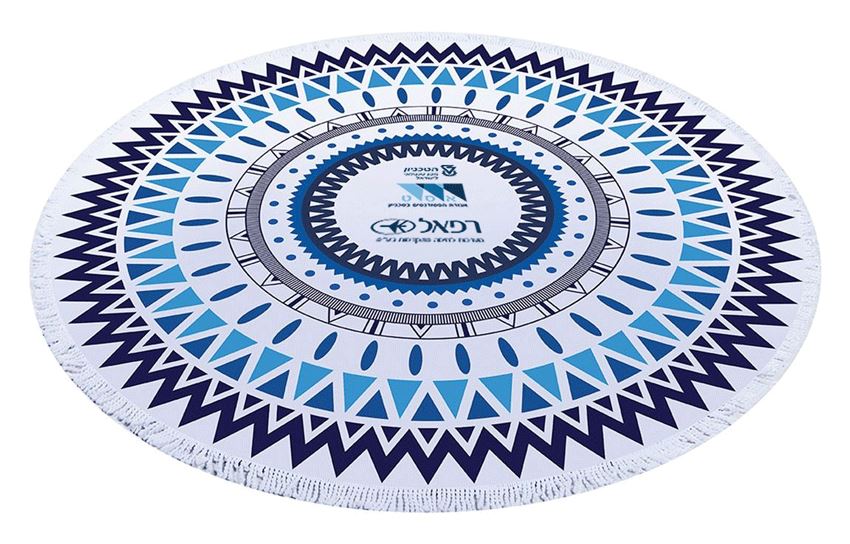 מגבת עגולה ממותגת. ניתן לעצב בשילוב צבעים, כל לקוח לפי המיתוג שלו.