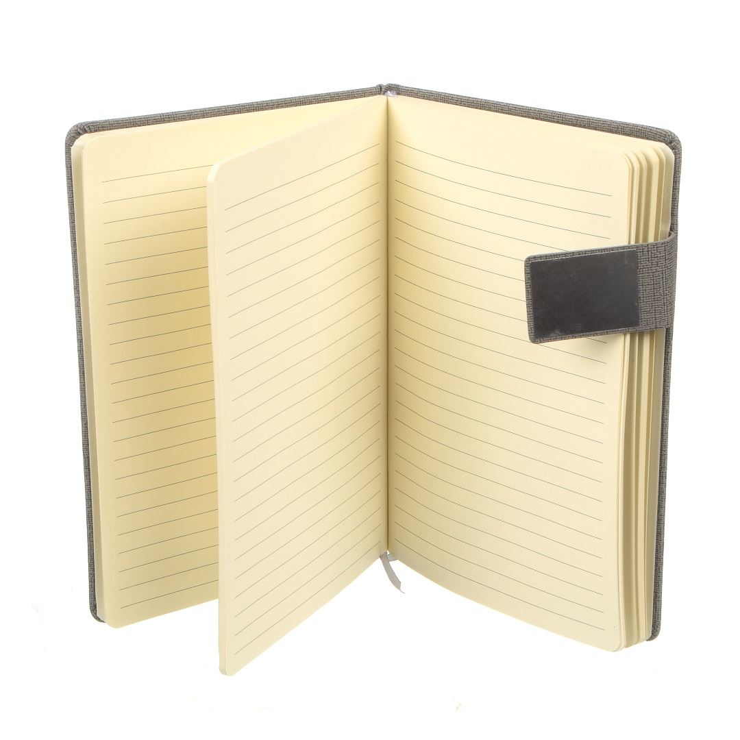מחברת מהודרת כריכת P.U גודל A5 על לשונית הסגירה קיימת לוחית מתכת שניתנת לחריטת לוגו מכיל 80 דפים ניתן למתג בהדפסה / חריטה או הטבעה . מידות : אורך 21 ס"מ , רוחב 14 ס"מ .