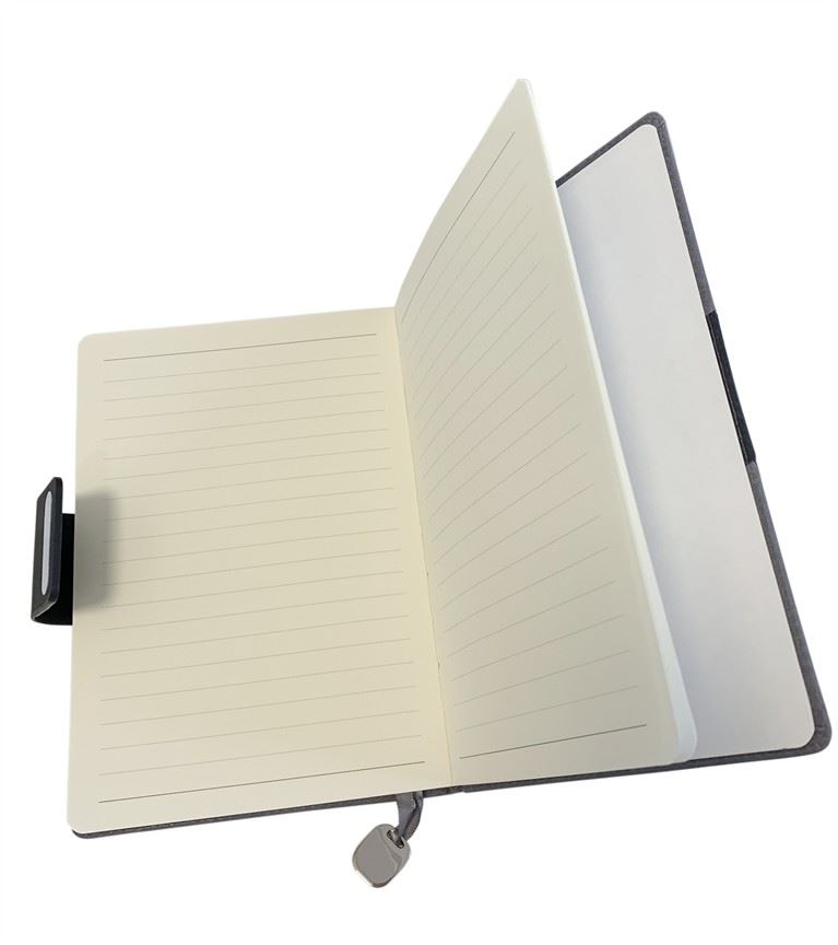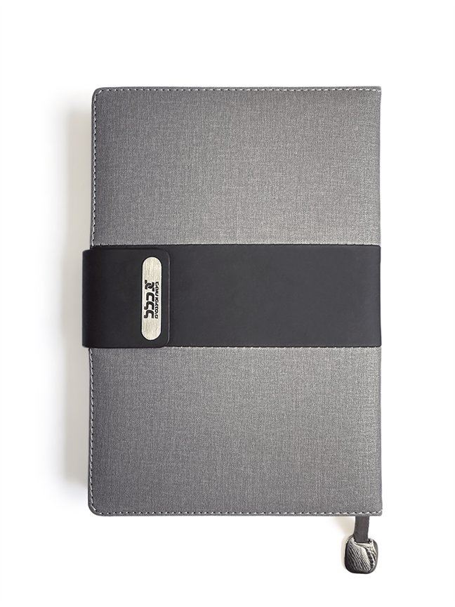 מחברת פייר קארדן-סגירה מגנטית המחברת מכילה 120 דף (דפי שורות) כריכה P.U בשילוב טקסטורה דמוי בד סמניית סטאן עם לוחית מתכת גודל - 147/210 ס"מ