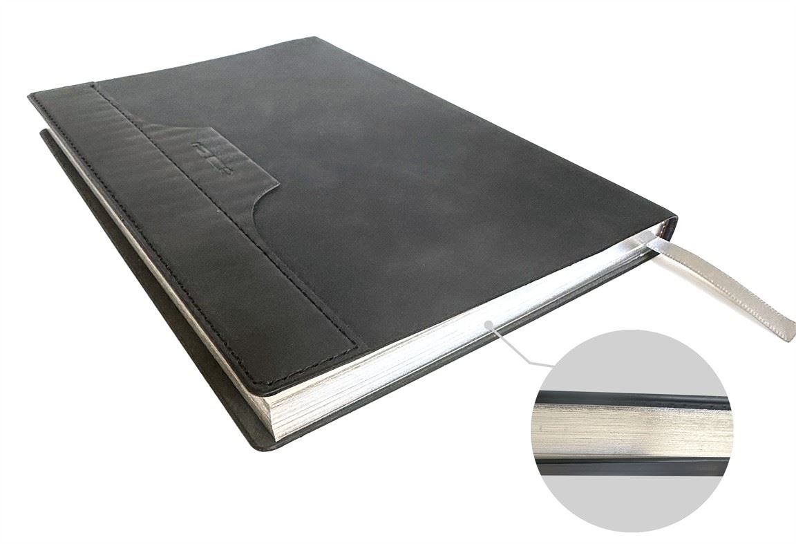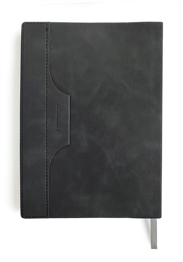 מחברת פייר קרדן , כריכה P.U , עם מקום לעט המחברת פתיחה עברית, 112 דפי שורות , נייר נטול עץ בצבע קרם, סיומת בדופן כסוף סימניה מסרט סאטן המחברת ארוזה בשקית צלופן