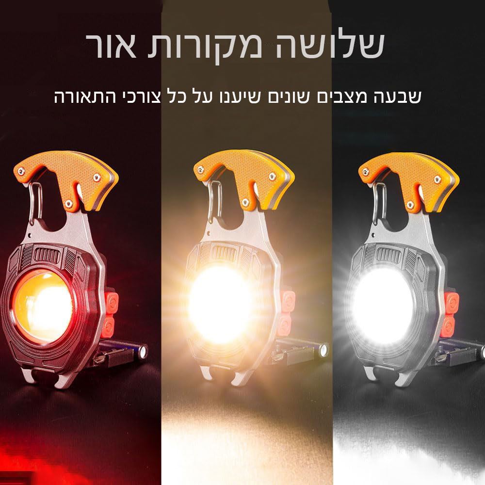 - מצבי תאורה: אור לבן חזק / חלש, אור צהוב חזק / חלש, אור אדום, אור אדום מהבהב
