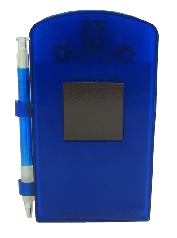 מתקן מגנטי למקרר עם דפי ממו ועט כדורי. ניתן למתג ע"ג המתקן. מידות מתקן: אורך 15.3 ס"מ, רוחב 8.7 ס"מ. מידות עט: גובה 13.5 ס"מ צבעים: כחול, אדום וסגול. מארז: אריזה מהודרת בצבע לבן.