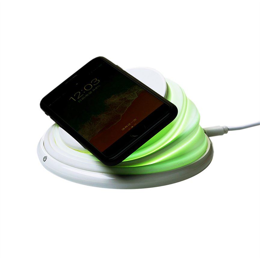 משטח טעינה שולחני עם תאורה. בעל עיצוב חדשני, פשוט להפעלה. טעינה מהירה למכשירים התומכים בטכנולוגיית QI. הנורה נדלקת בנגיעה קלה. ניתן למתג בהדפסה ע"ג המוצר.