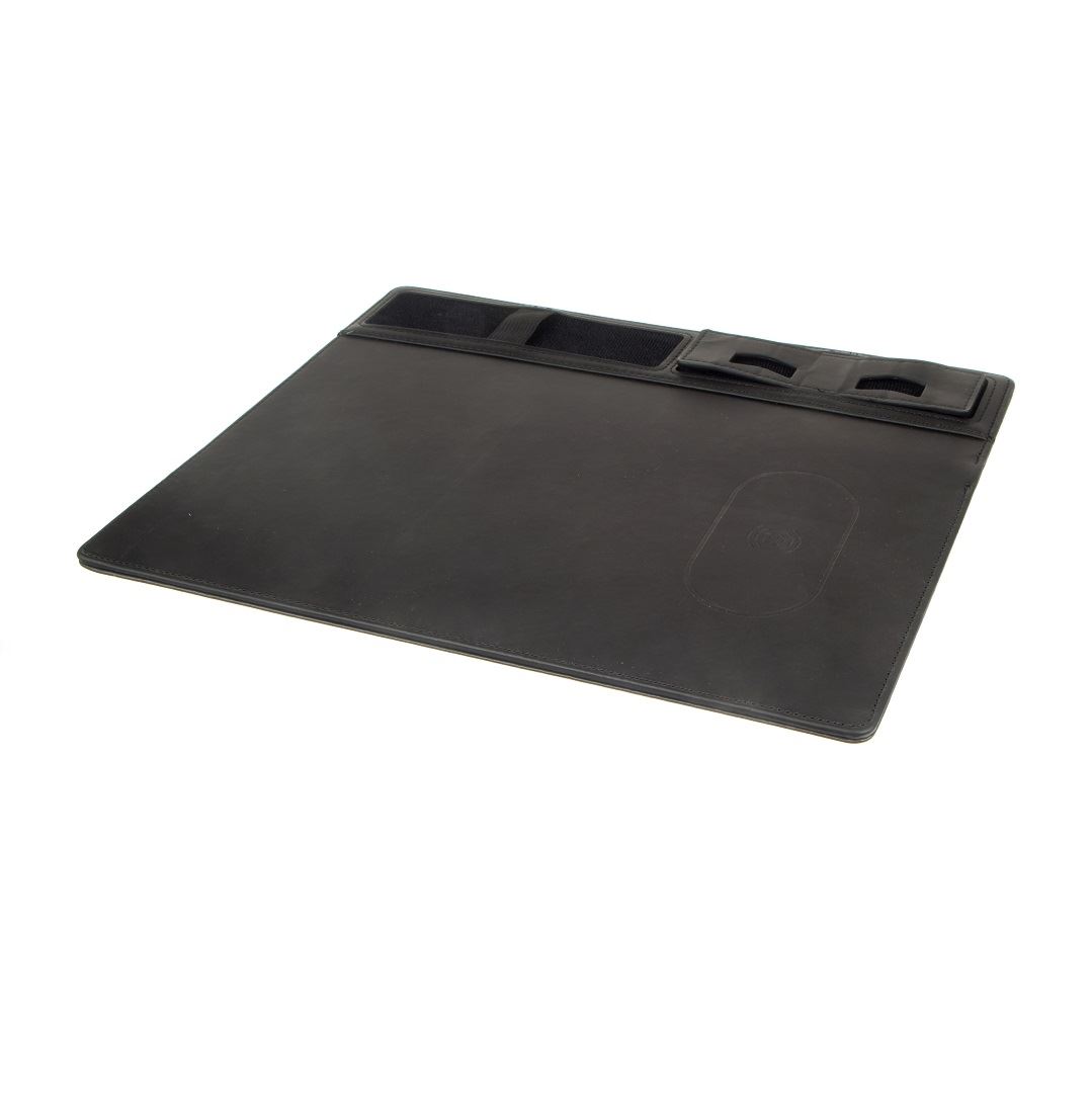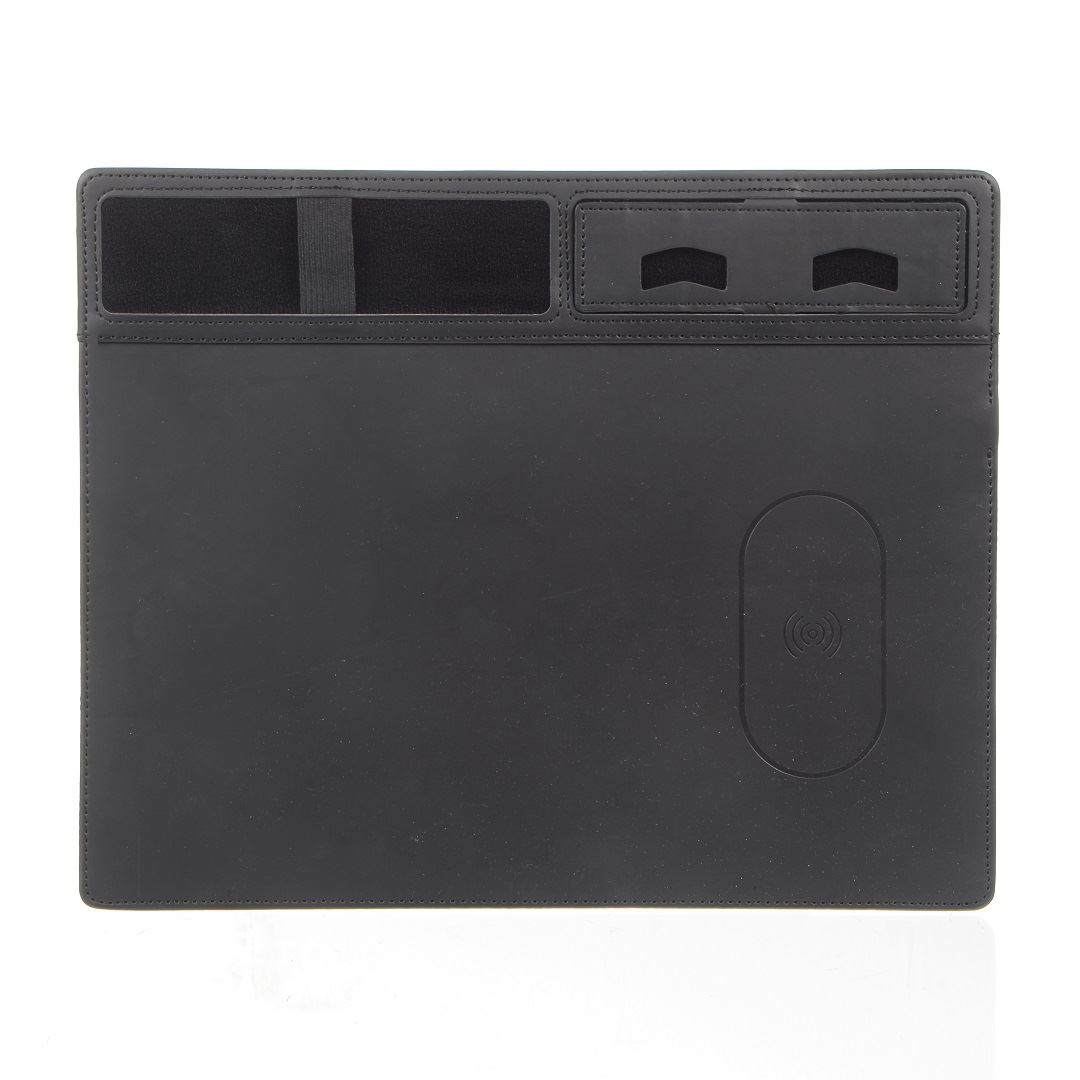 פד לעכבר עם משטח טעינה אלחוטי . המשטח כולל מטען אלחוטי בטכנולוגיית QI שמאפשר לפלאפונים ניידים להיטען בקלות וללא צורך בחיבור קווי. טעינה מהירה ב-15W בנוסף יש מקום מיוחד לעט ומקום יעודי להצבת הפלאפון הנייד. מידות: אורך: 32 ס"מ, רוחב: 26 ס"מ משטח טעינה אלחוטי עם מיתוג לוגו מטען QI מובנה (למכשירים תומכים) שטח יעודי לסמארטפון ולעט עשוי עור סינטטי עם תפירה מעמד קטיפה לעטים ומכשירי כתיבה חיבור לשקע USB סטנדרטי