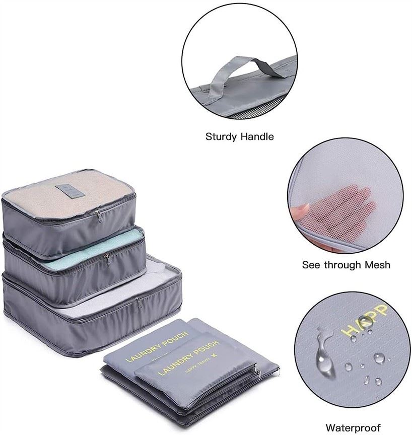 סט אחסון למזוודה - 6 חלקים תיקי האחסון מאפשר אריזה מסודרת במזוודה 3 הנרתיקים הגדולים כוללים בד רשת נושם, פרקטי ואסטטי רוכסן דו כיווני בד ניילון עבה באיכות גבוהה ואיכותי, תפירה נוחה ועדינה, עשויה היטב ועמידה, קל משקל ונייד.מתאים למשפחות/זוגות או לנסיעות לטווח ארוך.