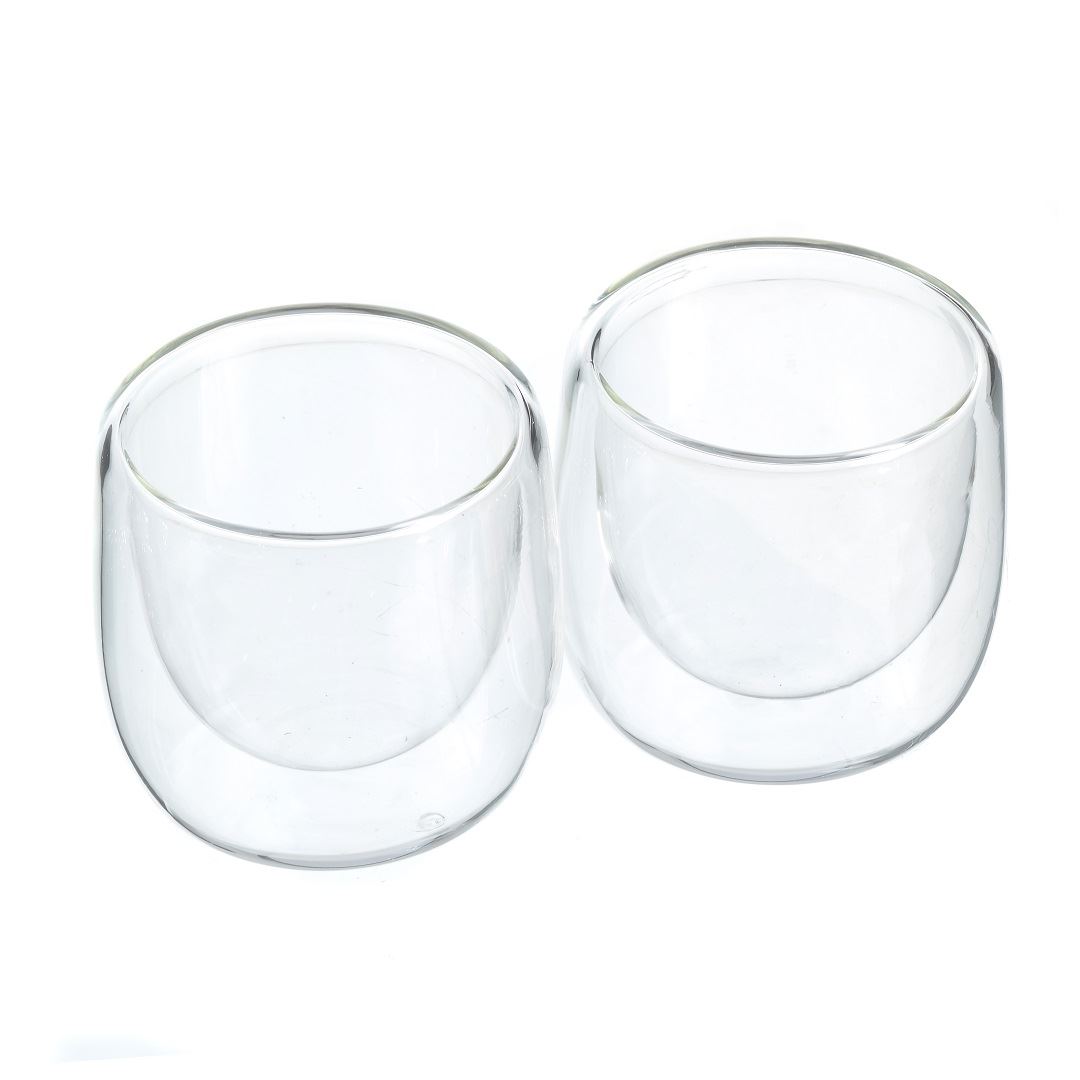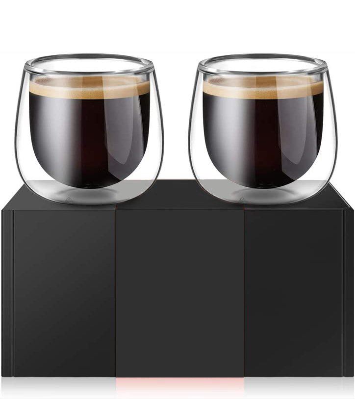 זוג כוסות אספרסו דופן כפולה לשמירה על חום/קור במארז קרטון שחור. 85 מ"ל. ניתן למתג בהדפסה ע"ג הכוס או לייצר חבק ממותג למארז.