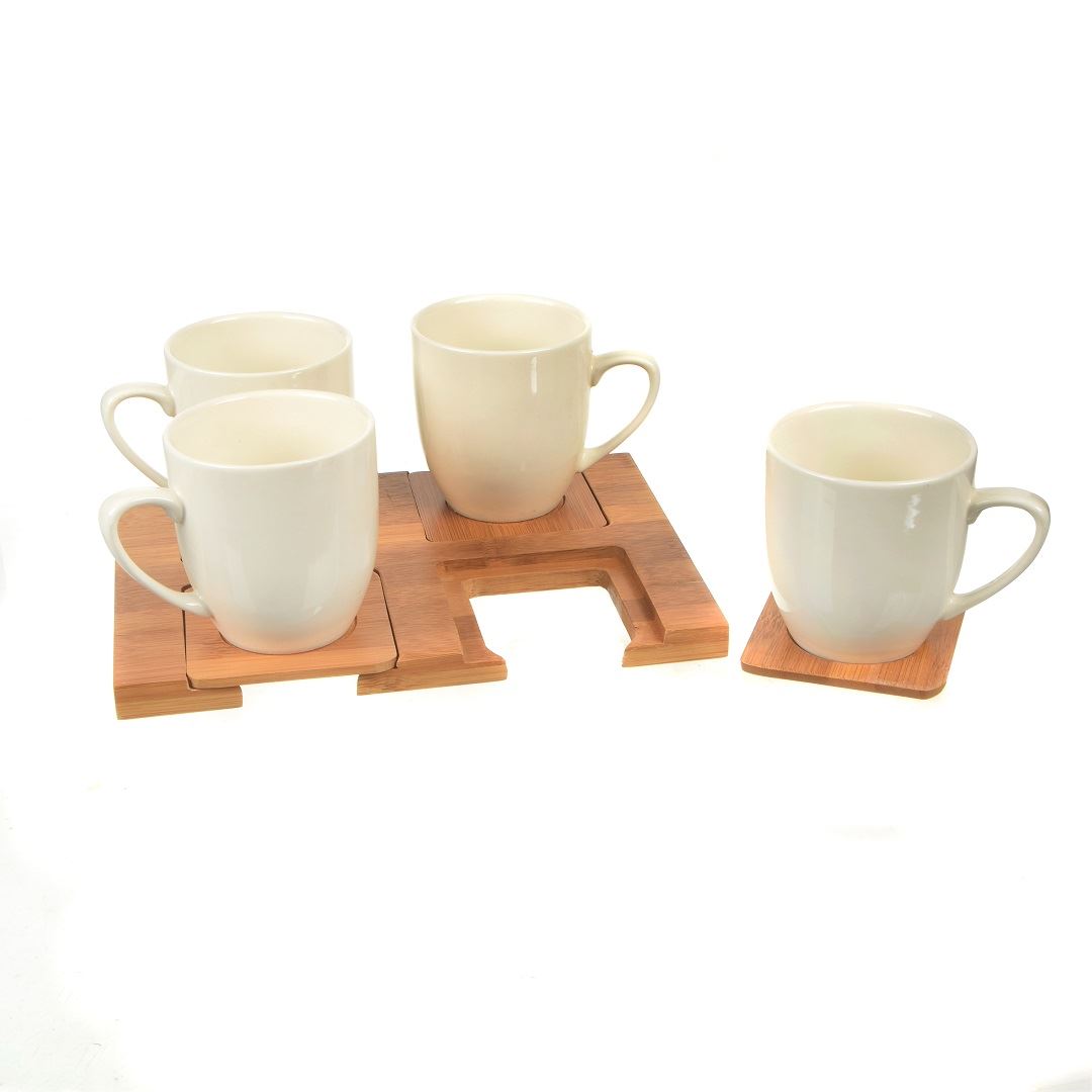 סט יוקרתי 4 ספלים על גבי מגש עץ עם תחתיות נשלפות המאפשר הגשה נוחה ואישית ניתן למתג על גבי המגש/ התחתיות/הספלים. מידות המגש: אורך 24 ס"מ, רוחב 18 ס"מ, גובה 1.5 ס"מ. מידות התחתית: רוחב : 8 ס"מ אורך 8 ס"מ נפח הספל: 250 מ"ל צבע המגש : עץ טבעי בציפוי לקה שקופה. צבע הספלים: לבן מארז: קופסאת מתנה מהודרת בצבע שחור.