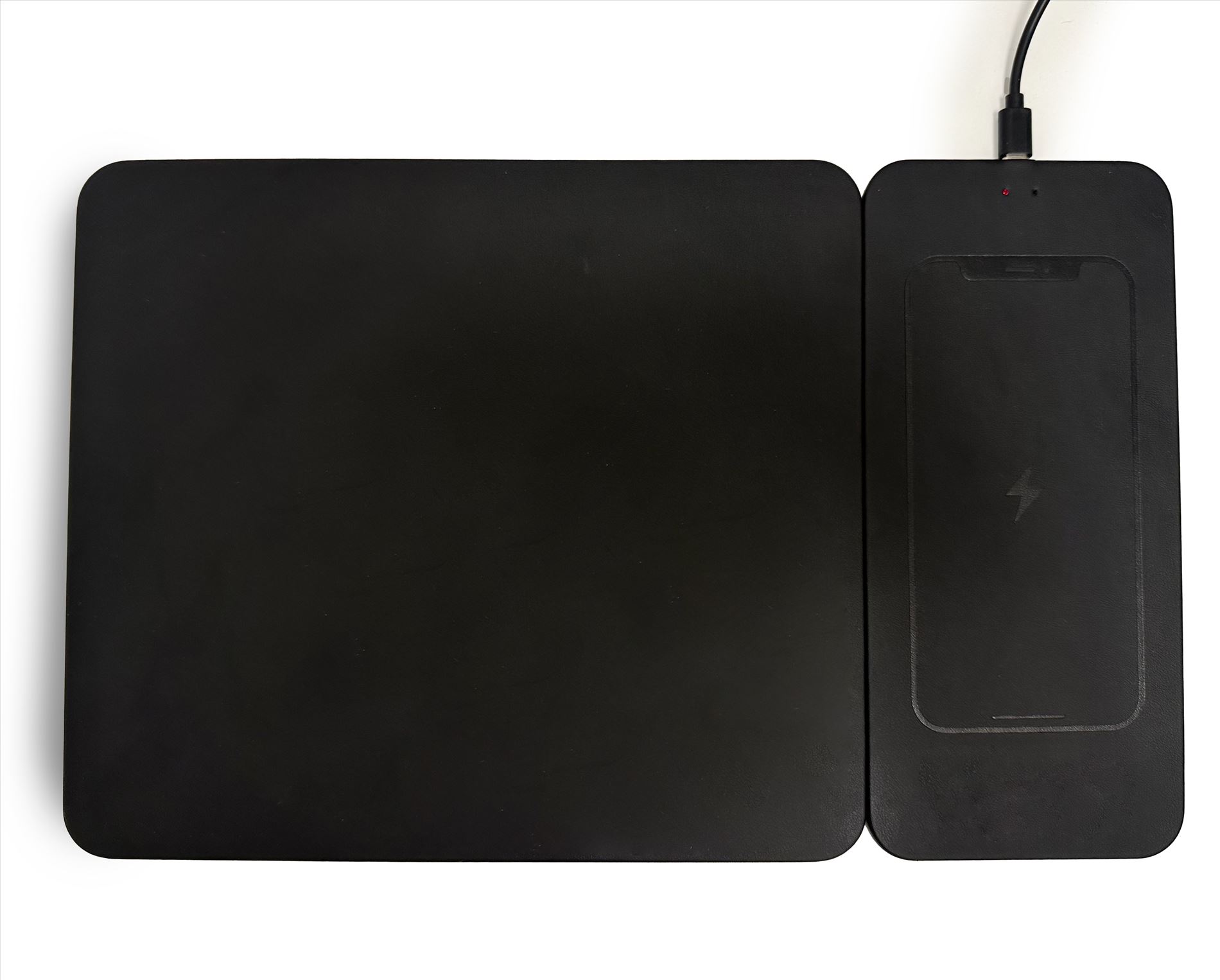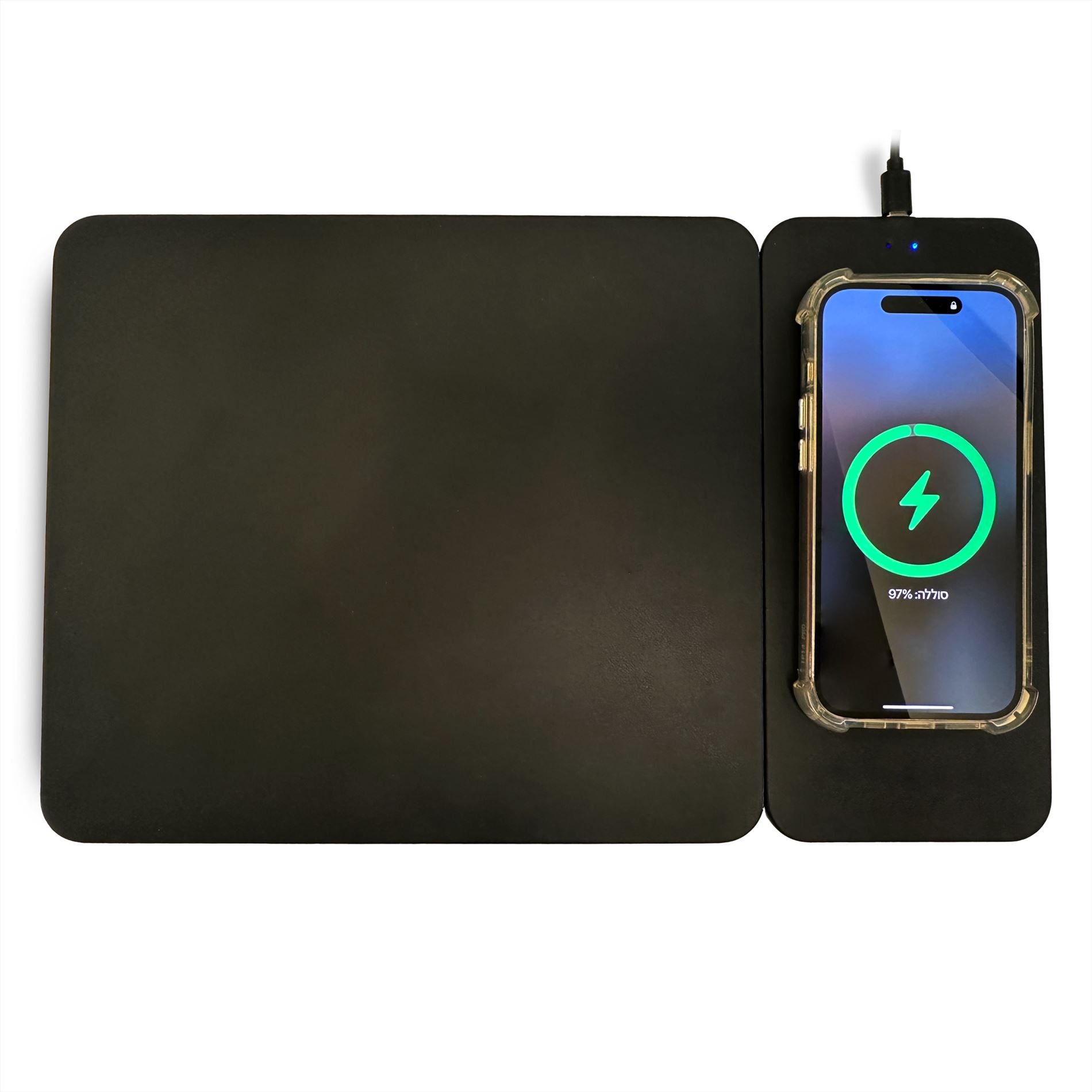 המשטח כולל מטען אלחוטי שמאפשר למכשיר נייד להיטען בקלות וללא צורך בחיבור קווי.