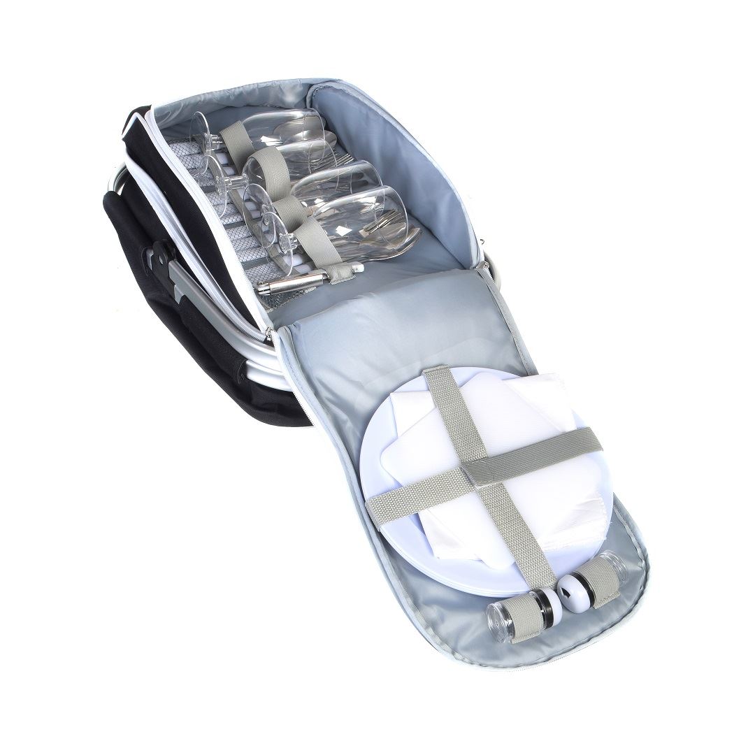 צידנית פיקניק בעלת 2 תאים המכילה סט ל 4 סועדים