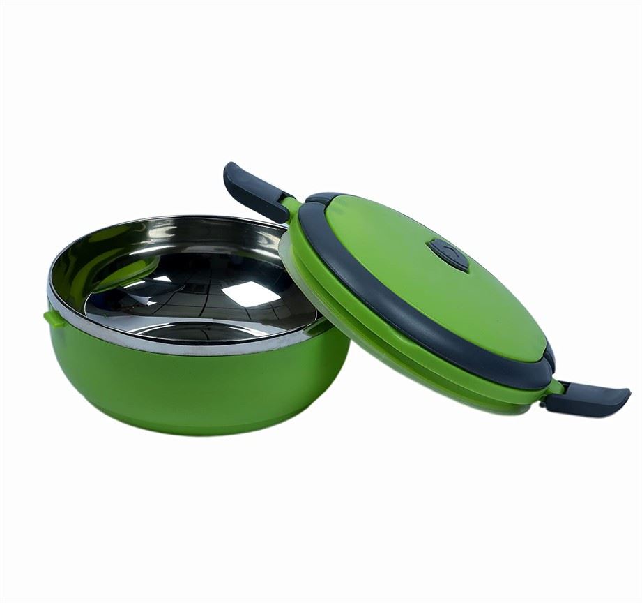 קופסת אוכל תרמית, אטומה כולל ידית נשיאה במכסה העליון. שומרת על האוכל חם ומוכן לאכילה. סוגרים הרמטיים אוטמים את המכסה לגוף הקופסה והתכולה אינה גולשת מתוכה. גובה 8 ס"מ, קוטר 15 ס"מ קיים בשלושה צבעים.