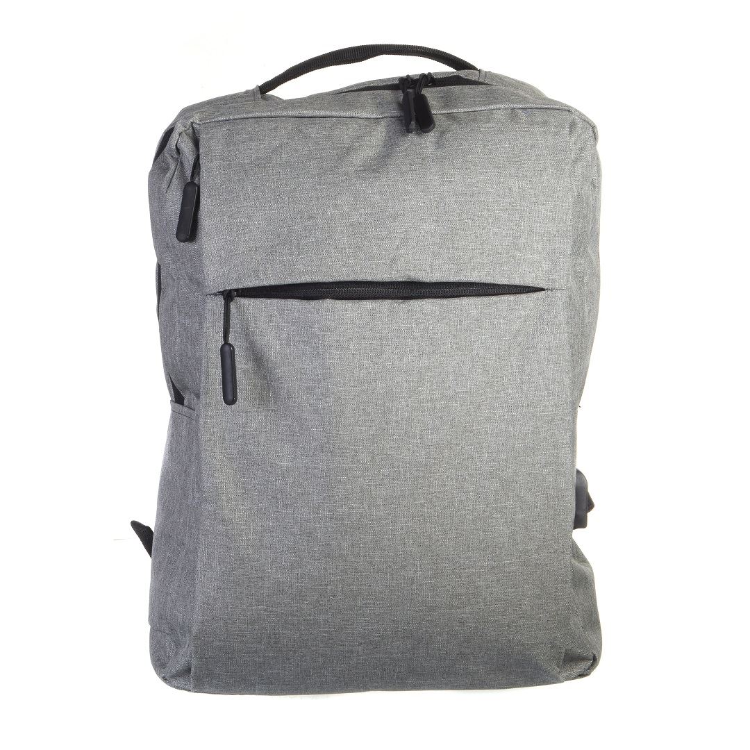 תיק גב איכותי, דוחה מים בעל שני תאים פנימיים אחד מהם למיקום לפטופ. כיסים פנימיים למיקום אביזרים אישיים. תא עם רוכסן בחזית, כיס צידי לבקבוק מים, רצועות גב עבות ומרופדות לנשיאה נוחה. יציאת USB חיצונית עם כבל טעינה מובנה לטעינת טלפונים ומחשבים ניידים. גודל: 43x28x10 ס"מ ניתן למיתוג ע"י הדפסה/ריקמה.
