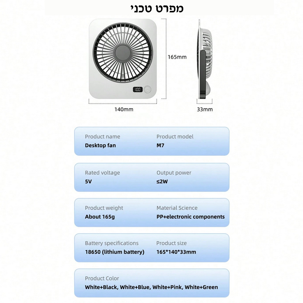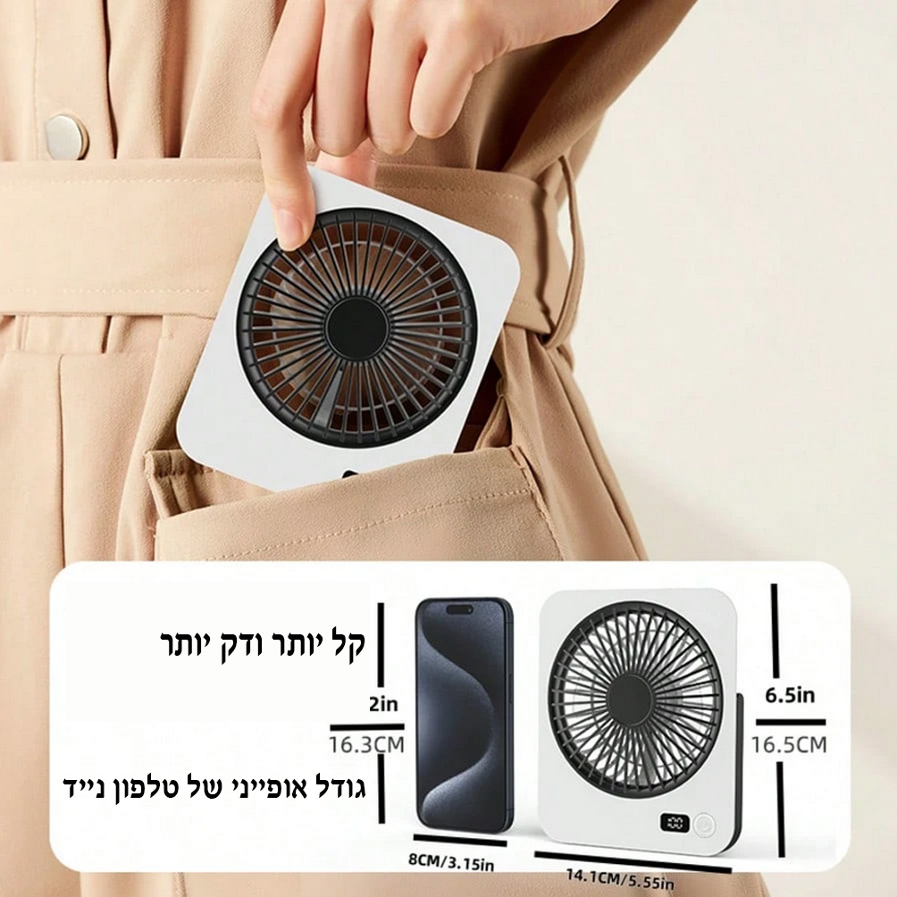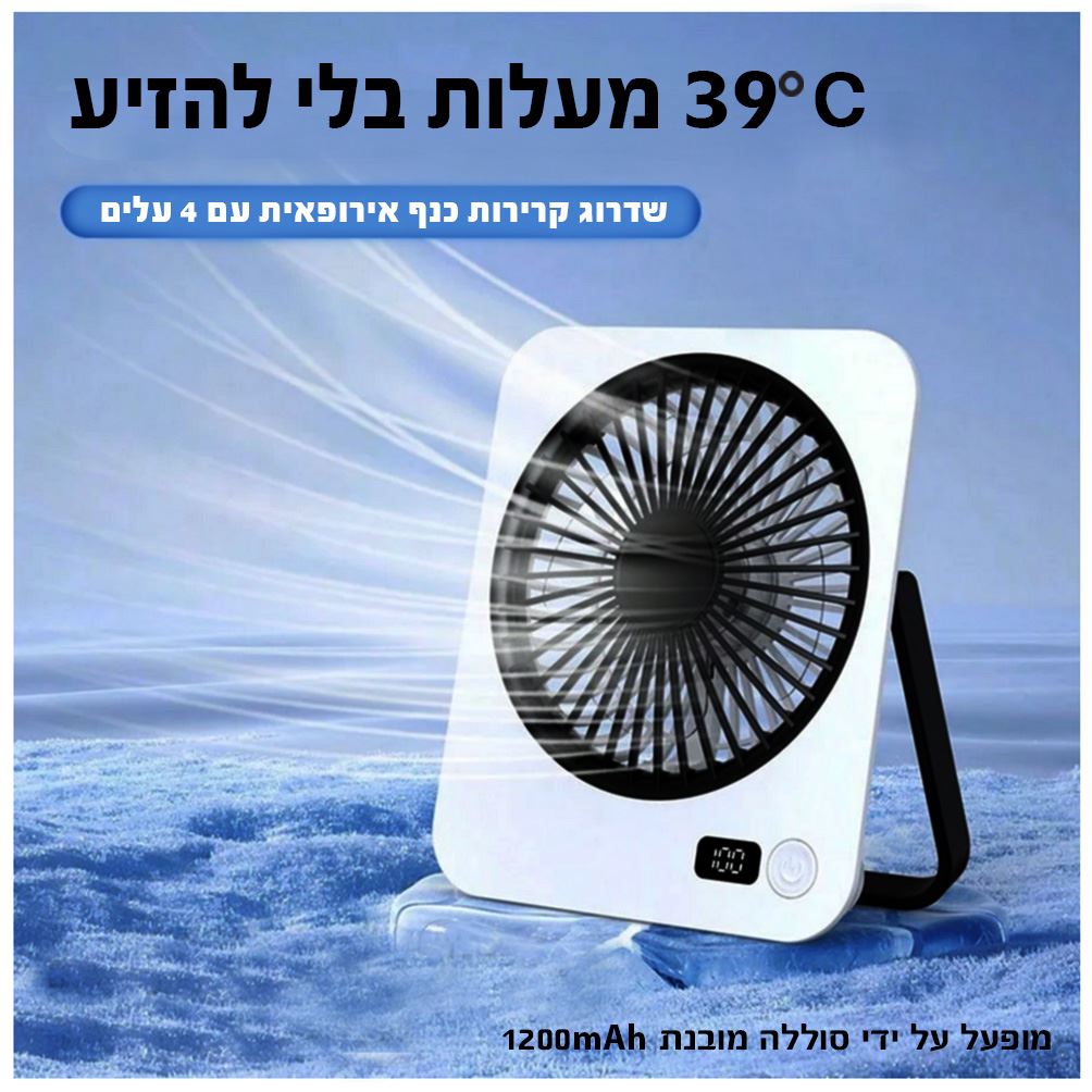 מאוורר שולחני - 1200mAh - מופעל באמצעות סוללה נטענת,
